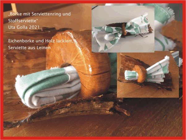 Tischdekoration aus Holz mit Stoffserviette